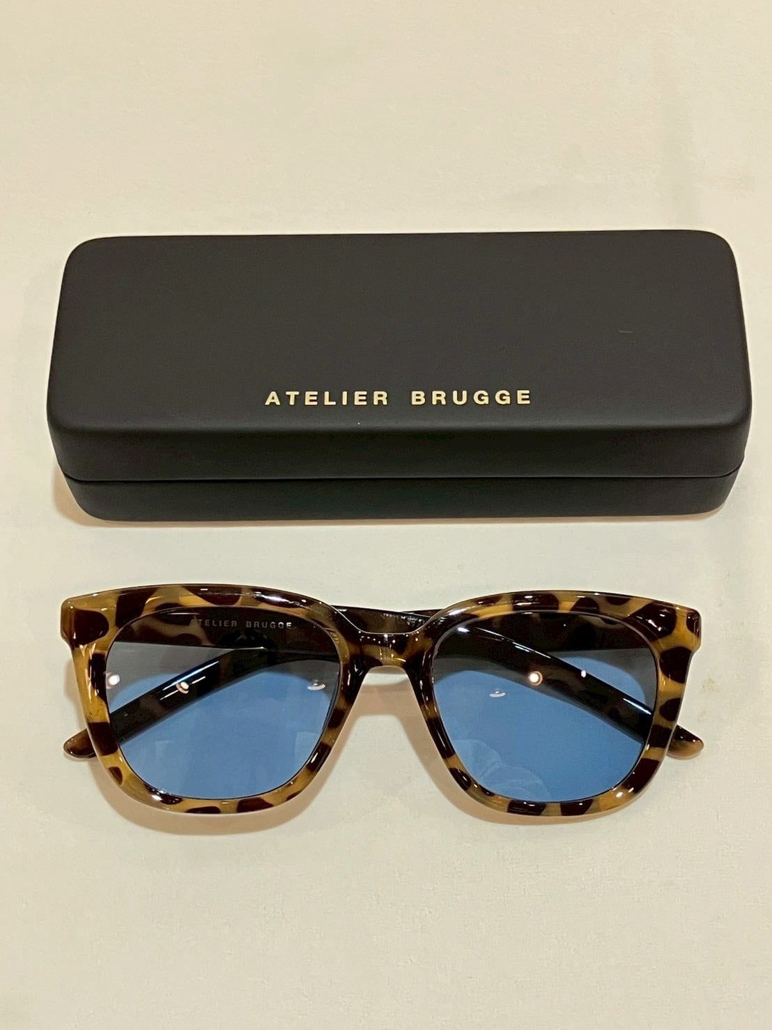 落ち着いたべっ甲調フレームに、涼しげなブルーレンズを組み合わせた洗練デザイン。