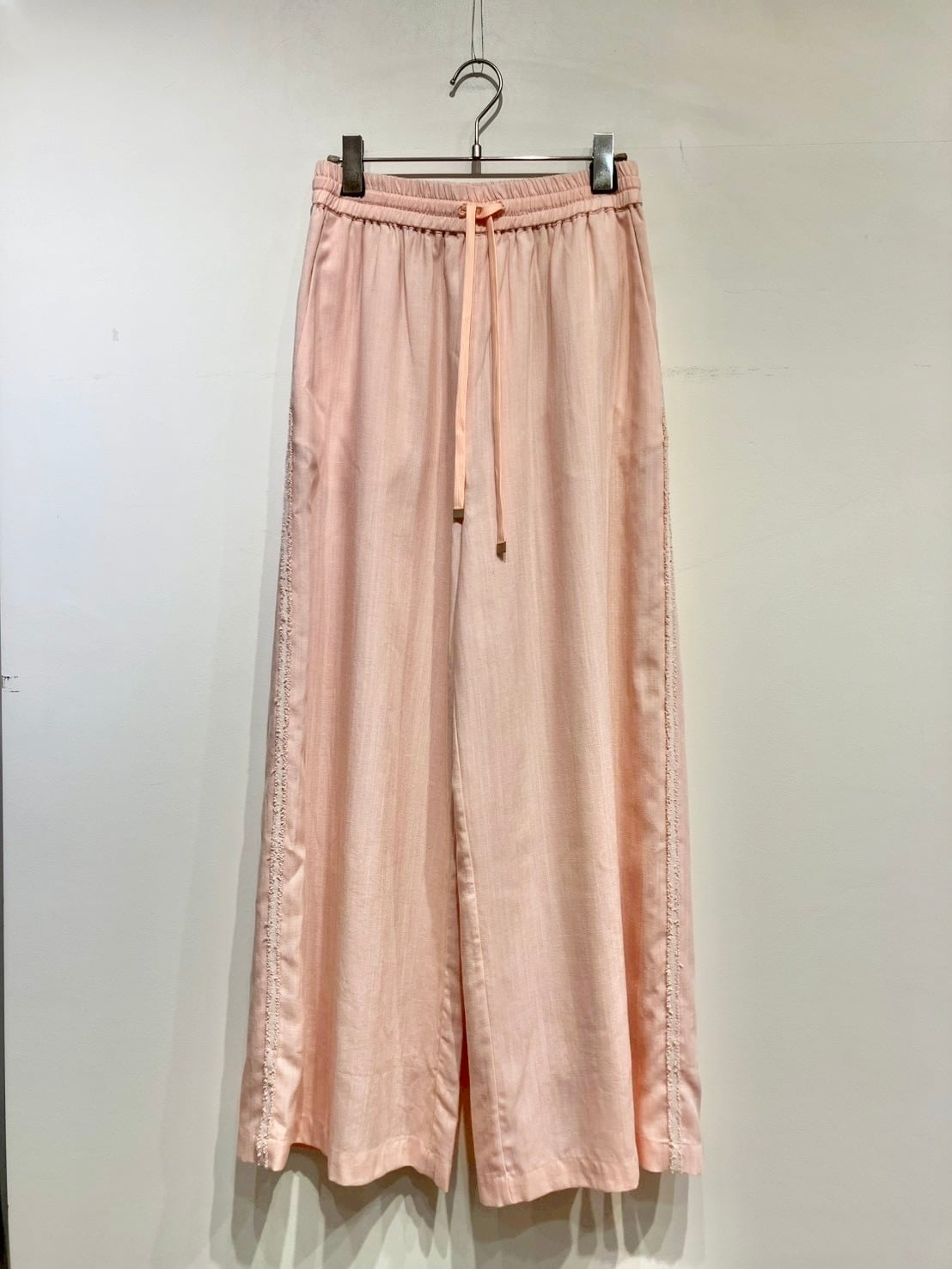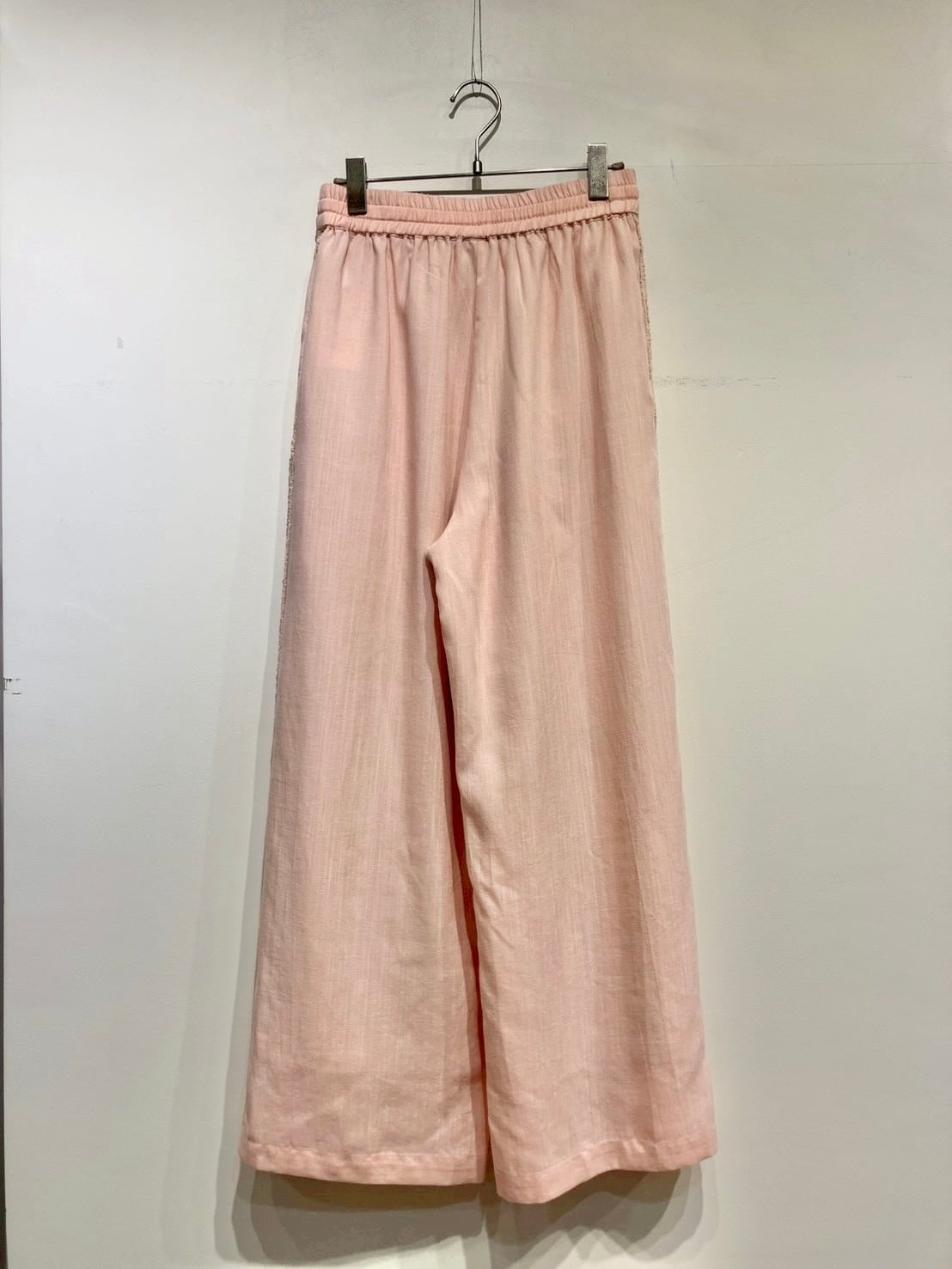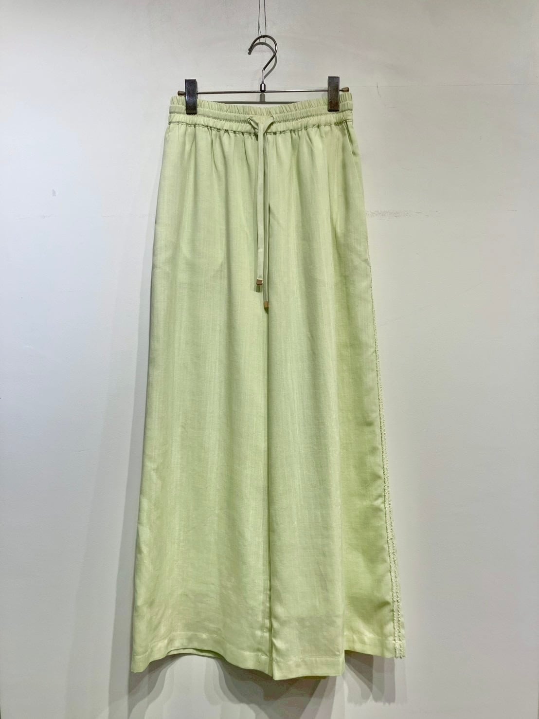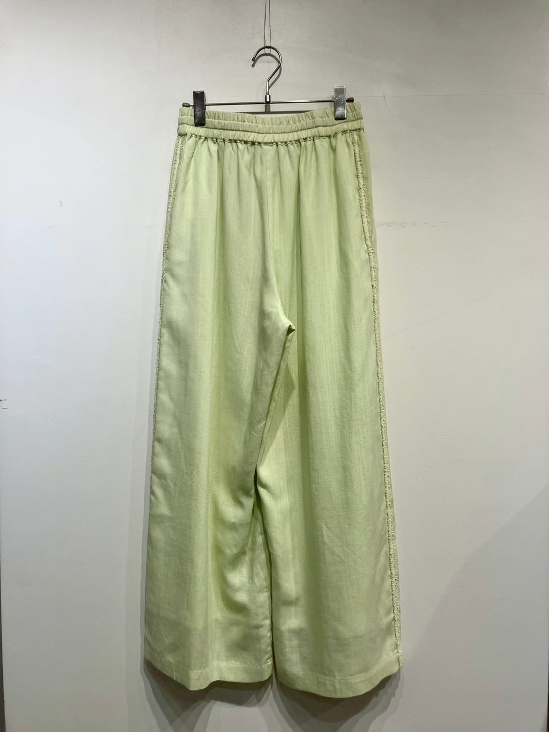 やわらかな色合いと軽やかな素材感が魅力のリラックスパンツ。