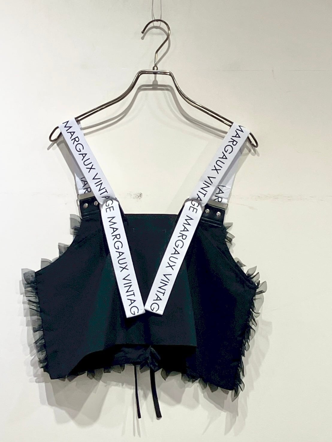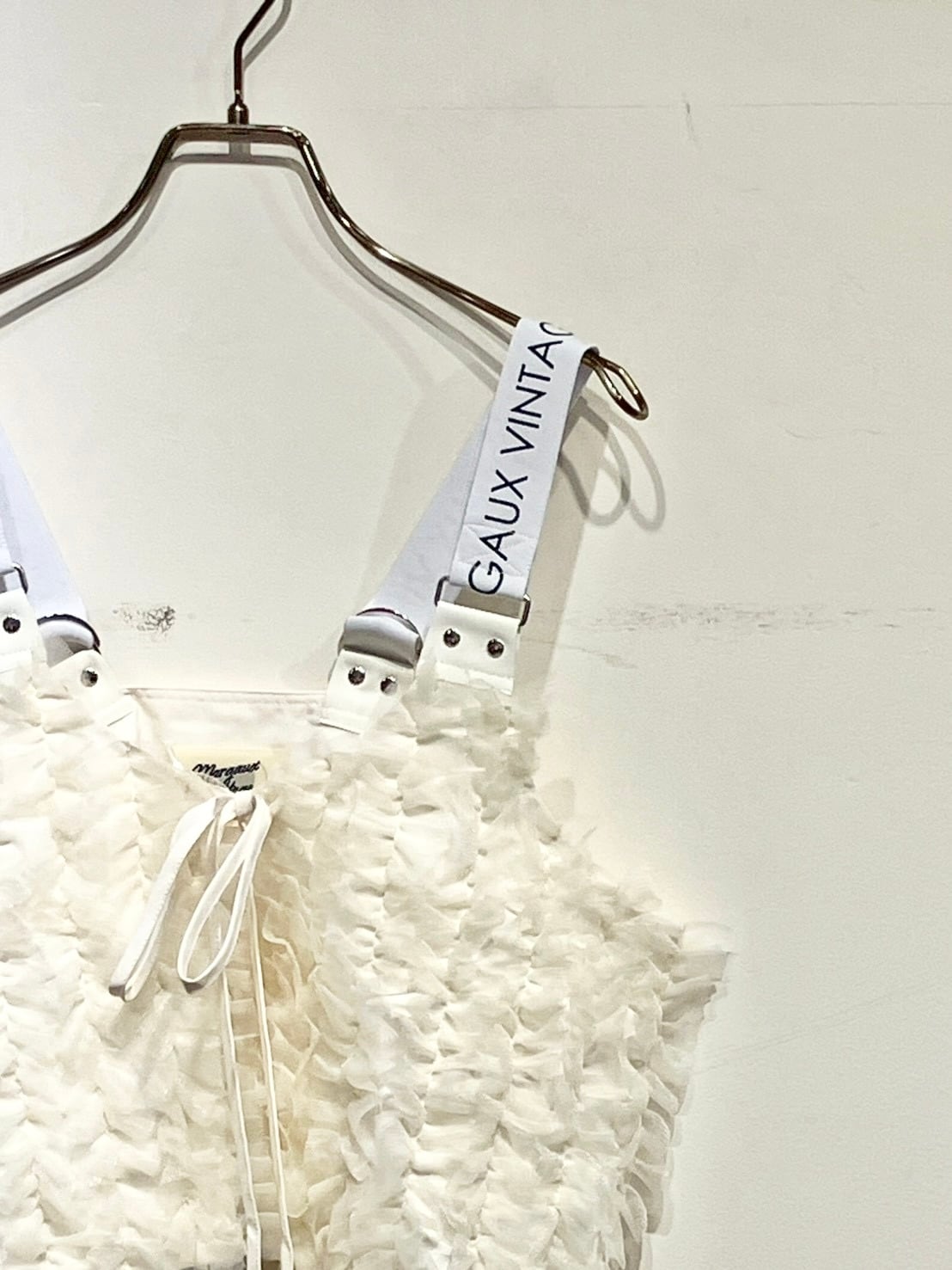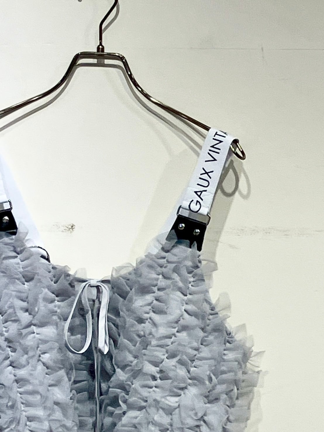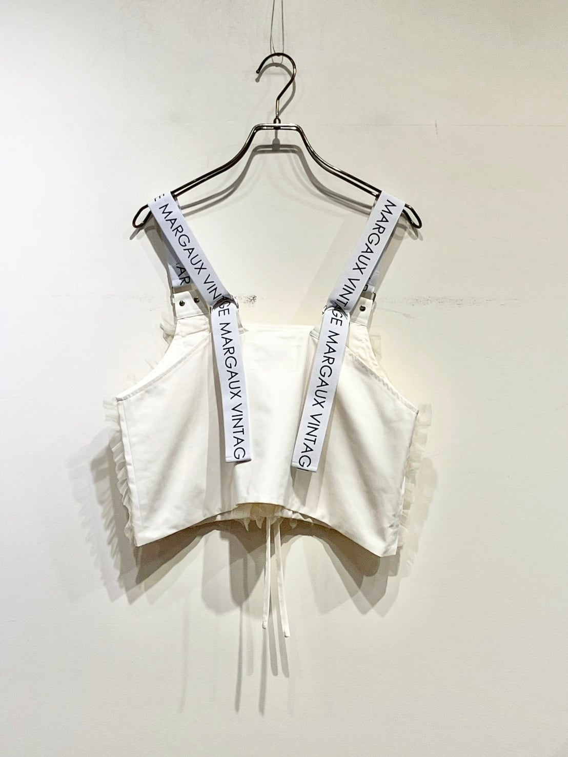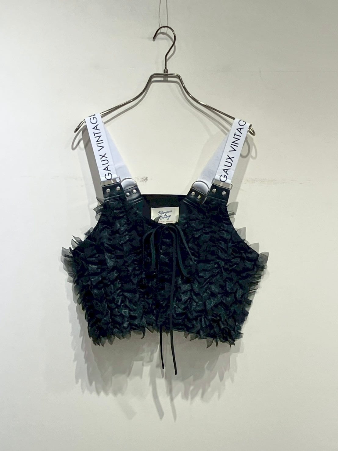 軽やかでフェミニンな印象を演出する、フリルデザインのショートビスチェ。