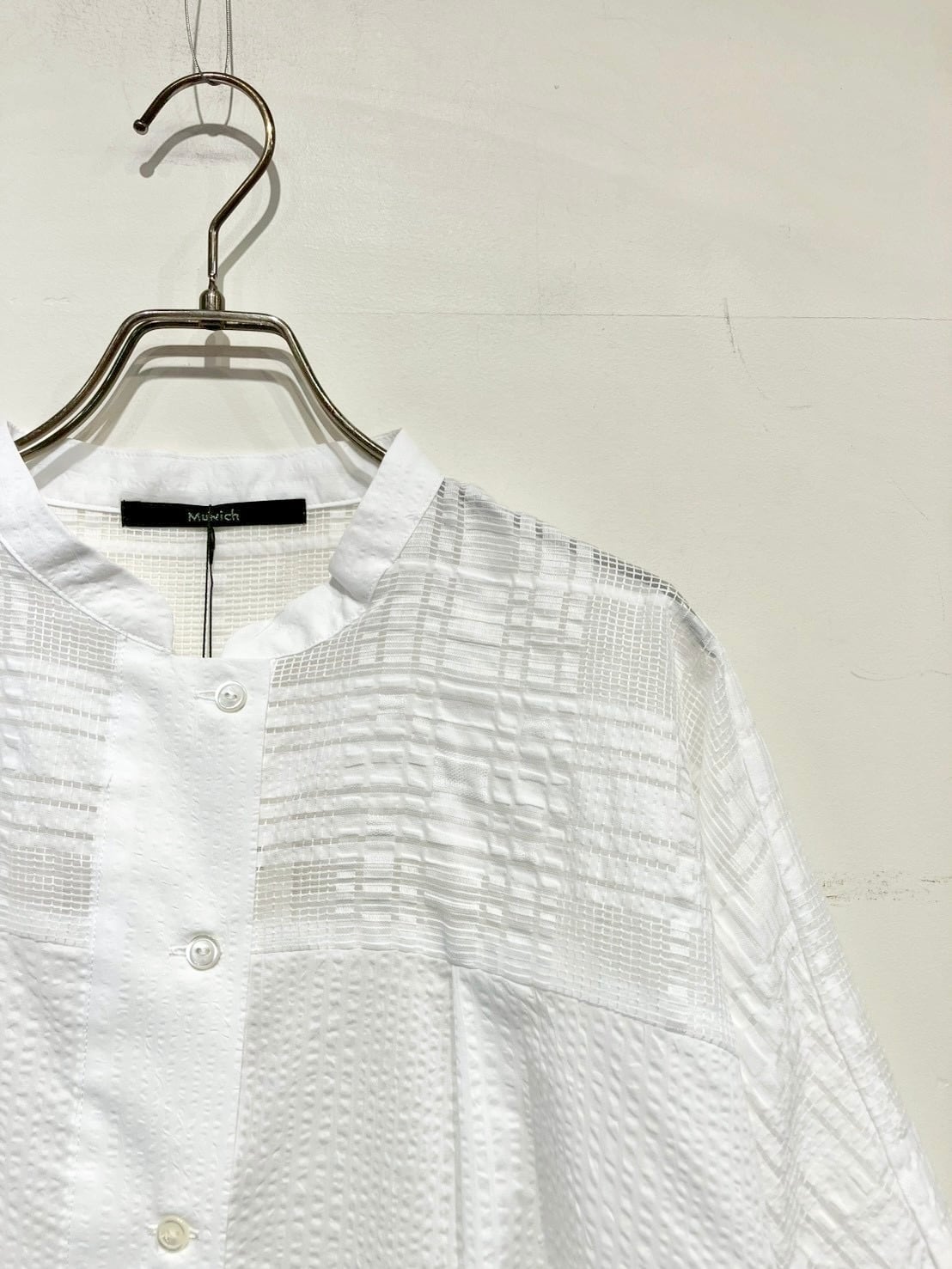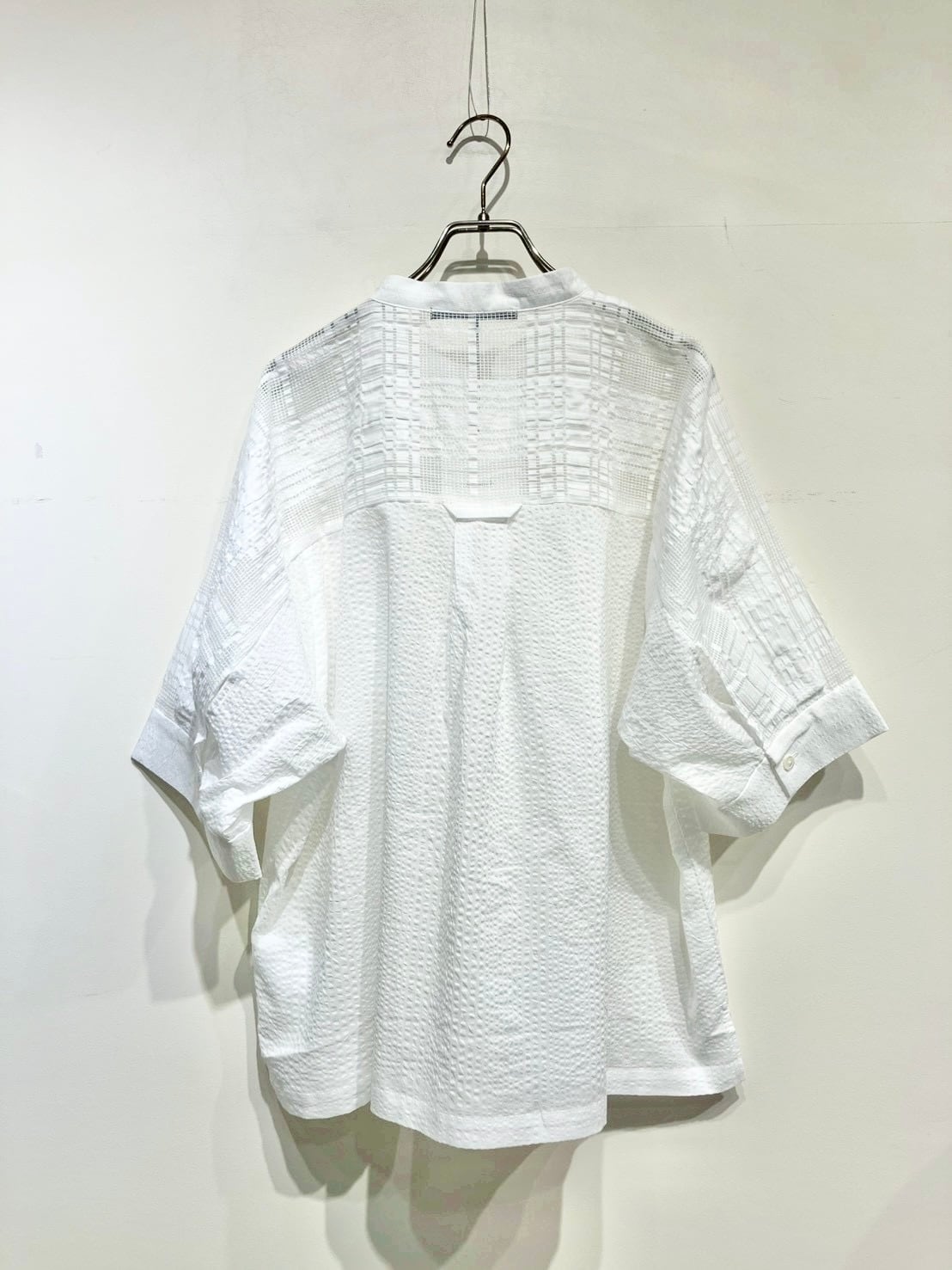 綿100%の「ミラクルウェーヴ」加工を施した軽くて柔らかな生地に、シアーなジャガードチェックを組み合わせた、異素材ドッキングの上質なプルオーバーシャツ。