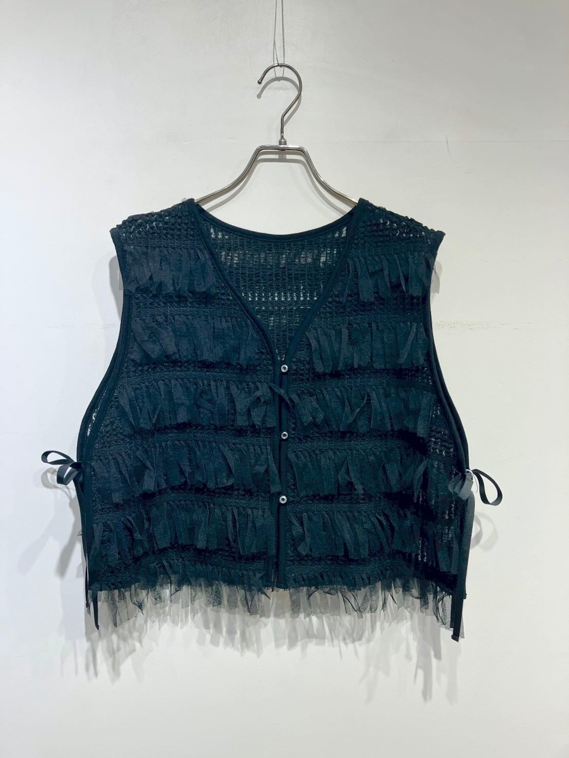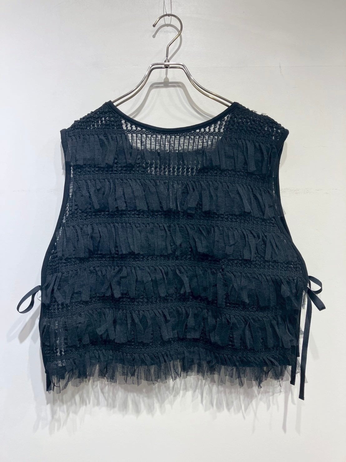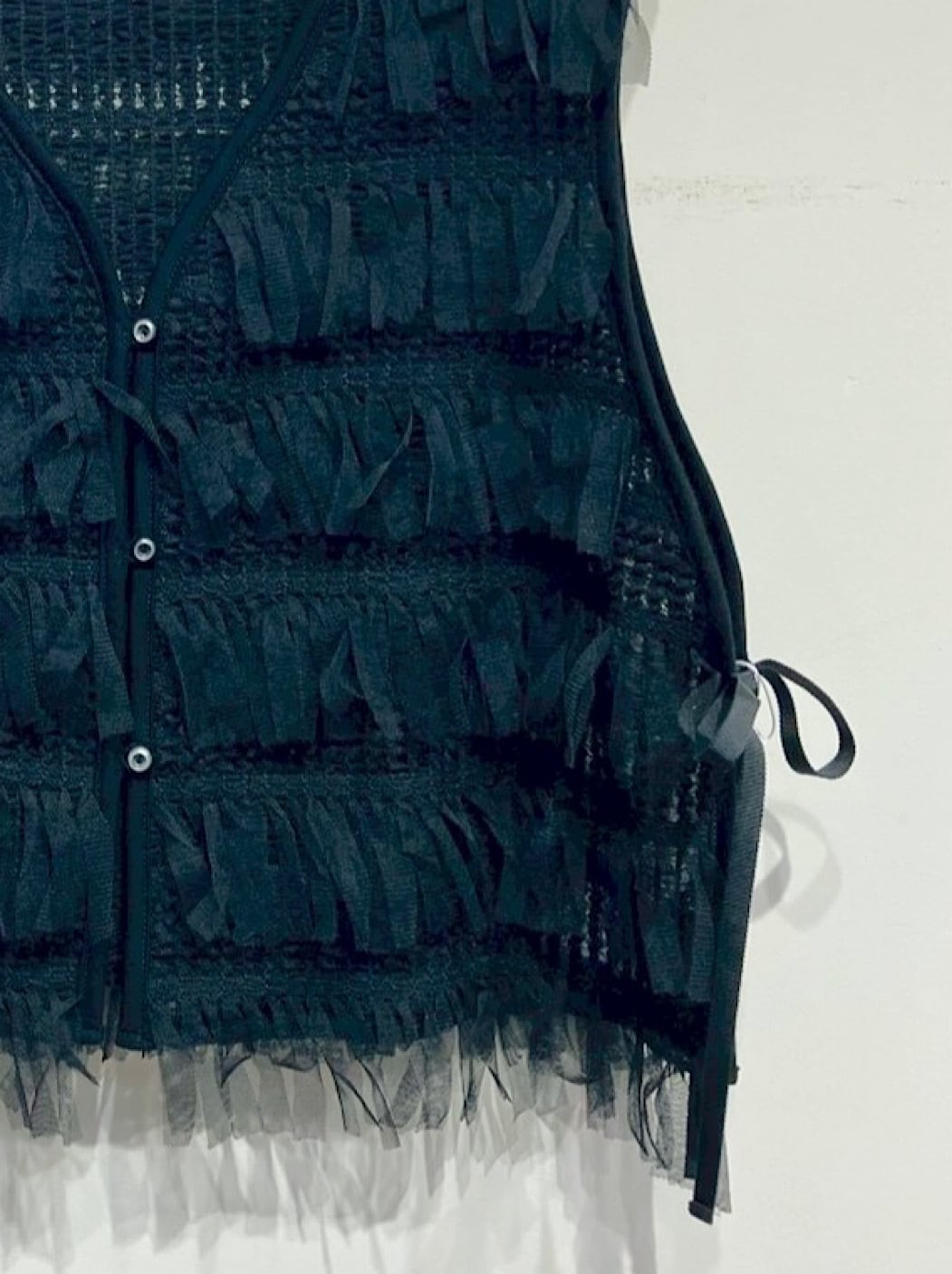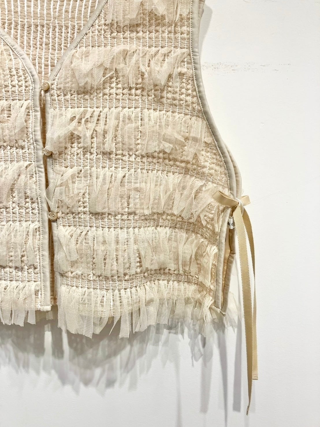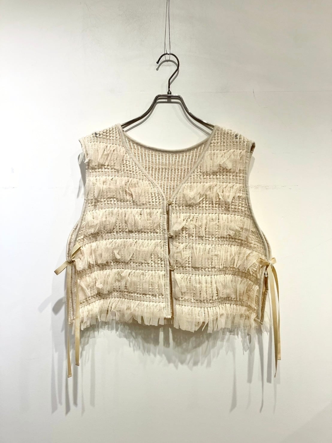 軽やかなチュール素材を重ねた、フェミニンなリボンベスト。