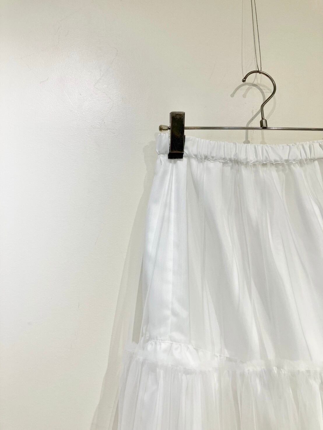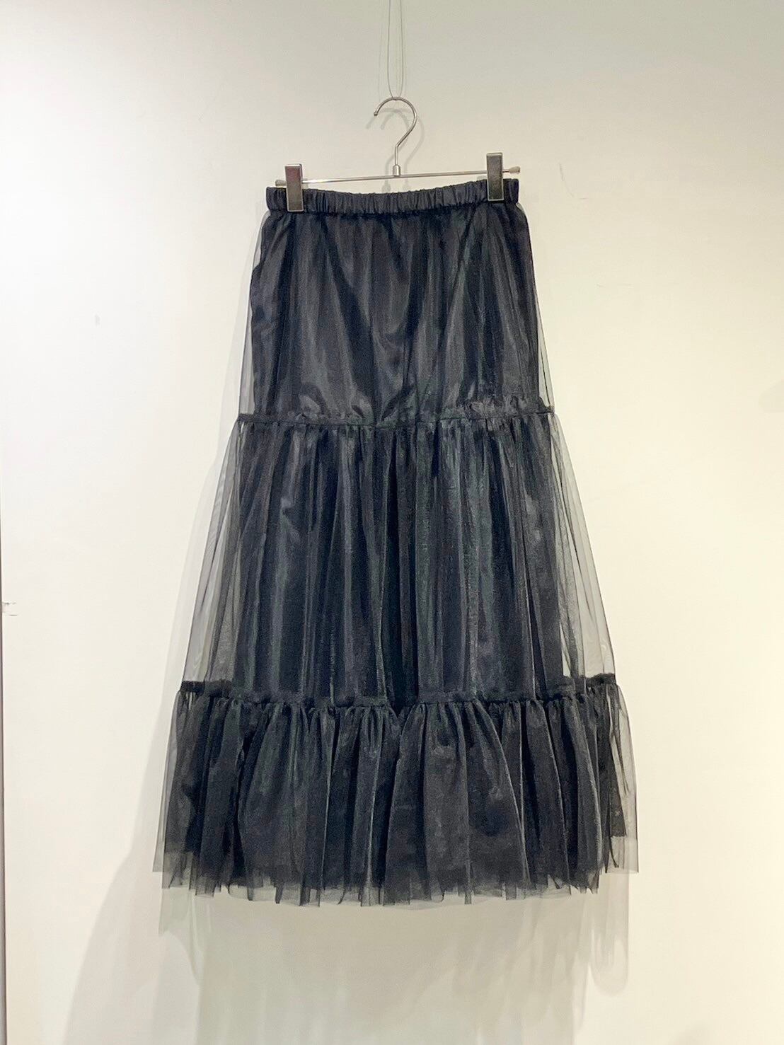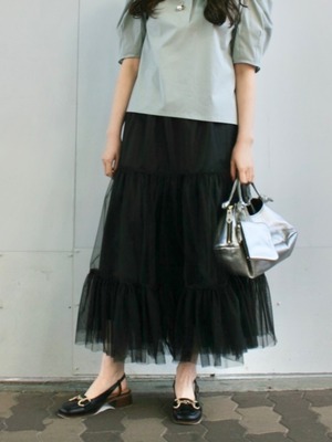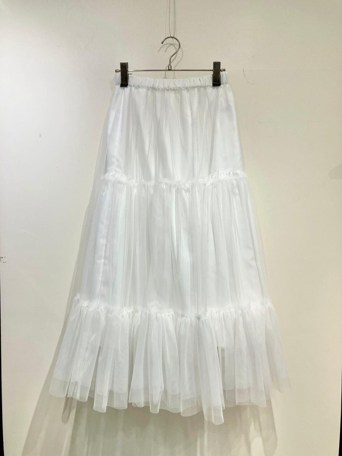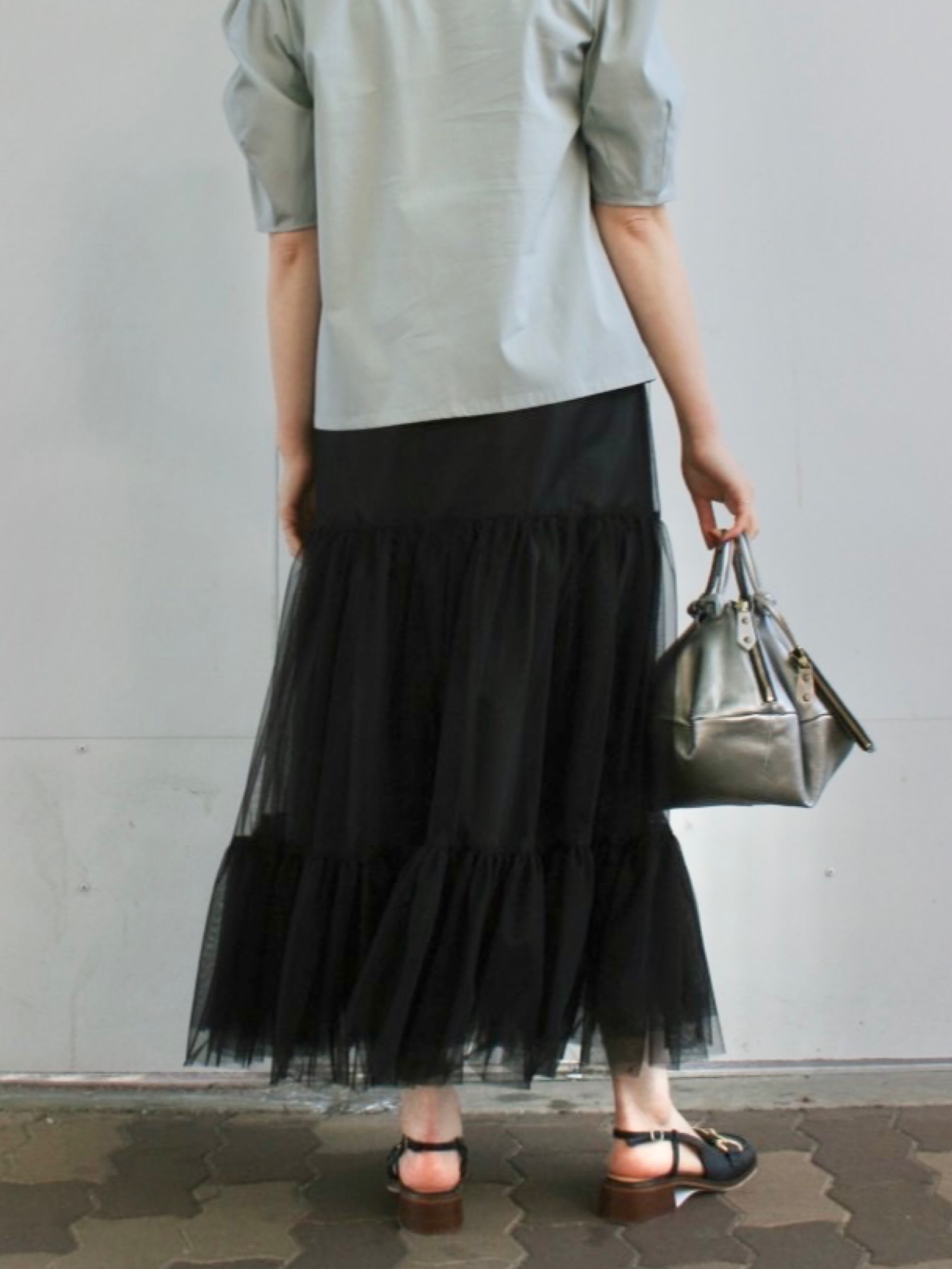 トレンド感のあるチュールレースのティアードが華やかなスカート。
