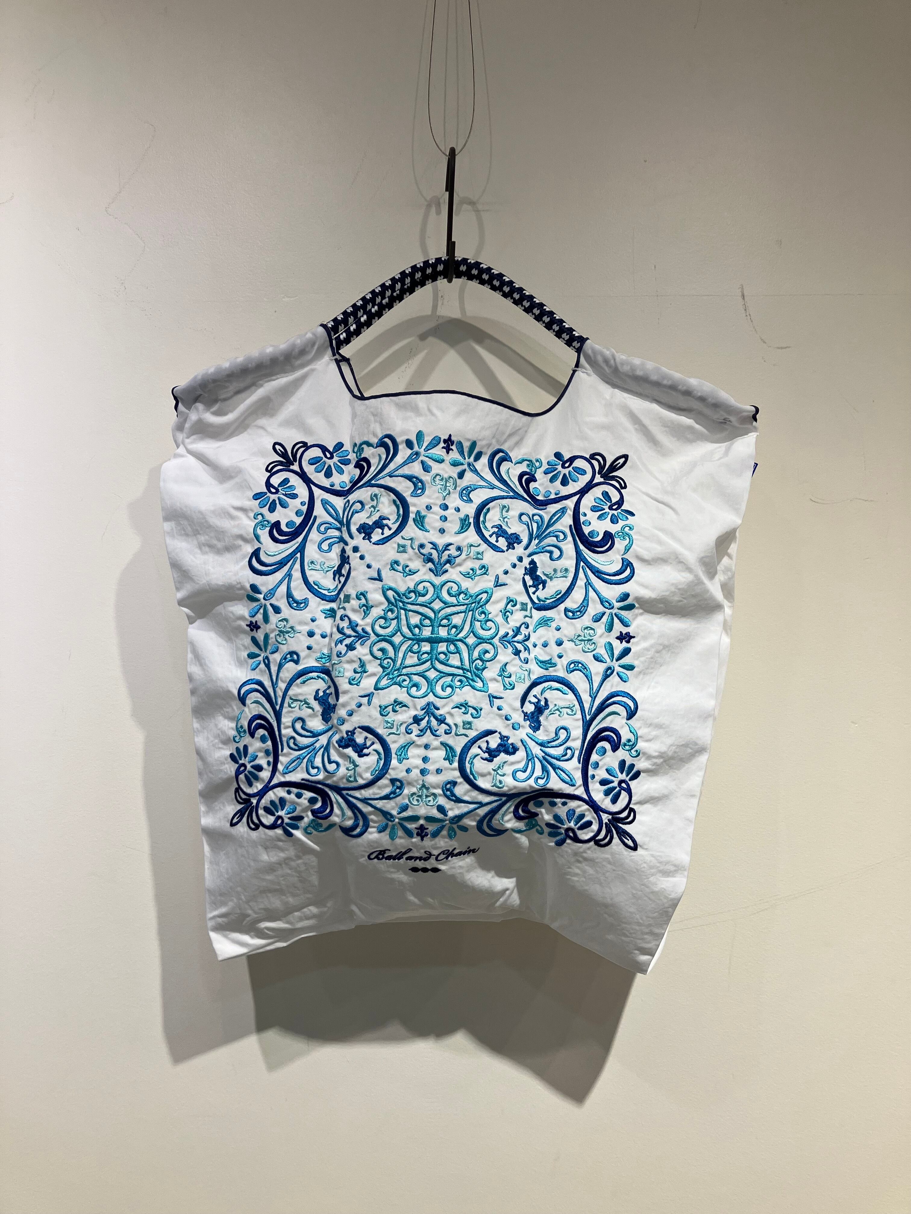 耐久性、撥水性に優れた厚手のポリエステル素材に、グラフィックデザインをそのまま「刺繍」で施すことで、高級感がありデザイン性の高いショッピングミニバッグです。