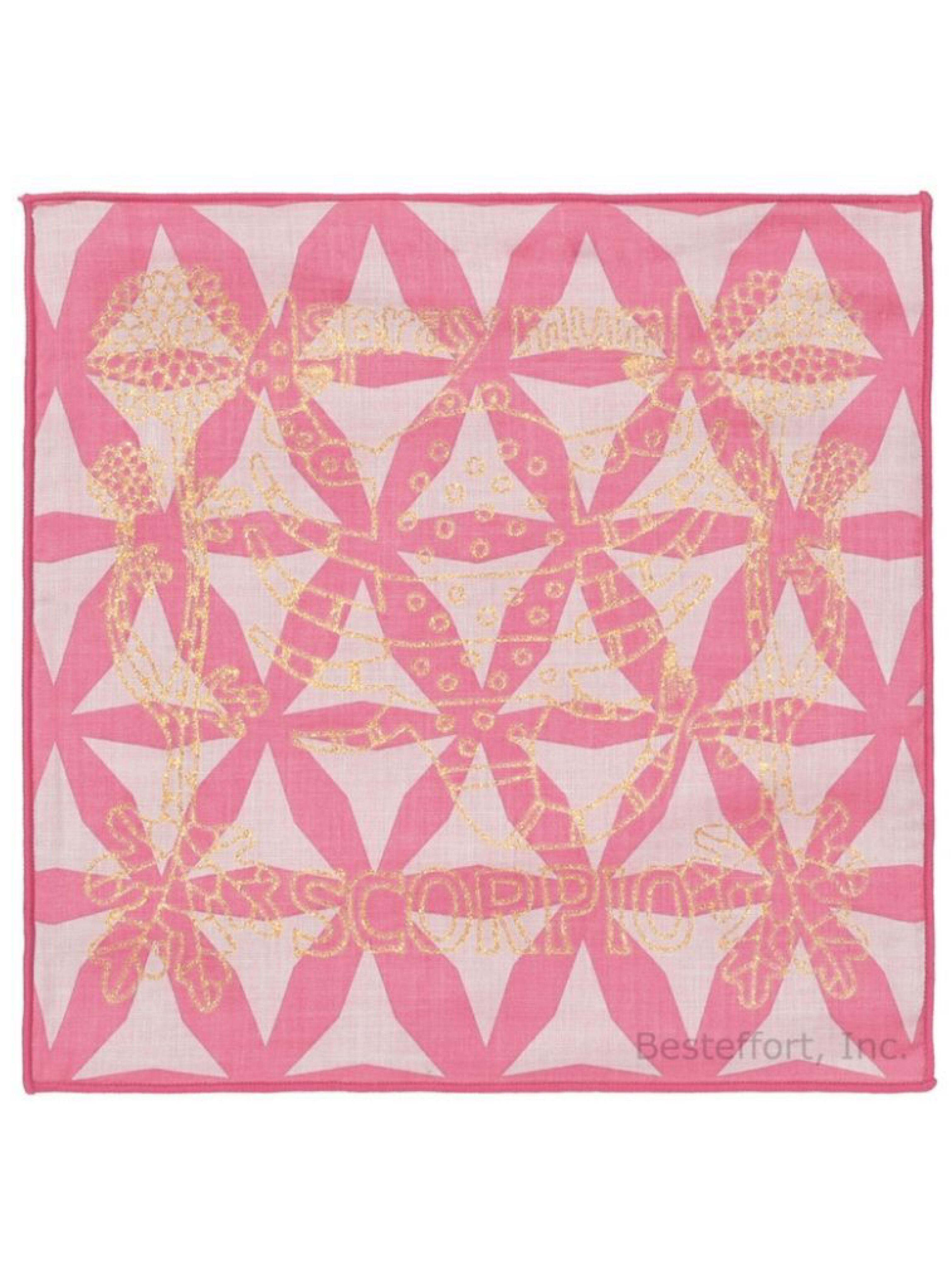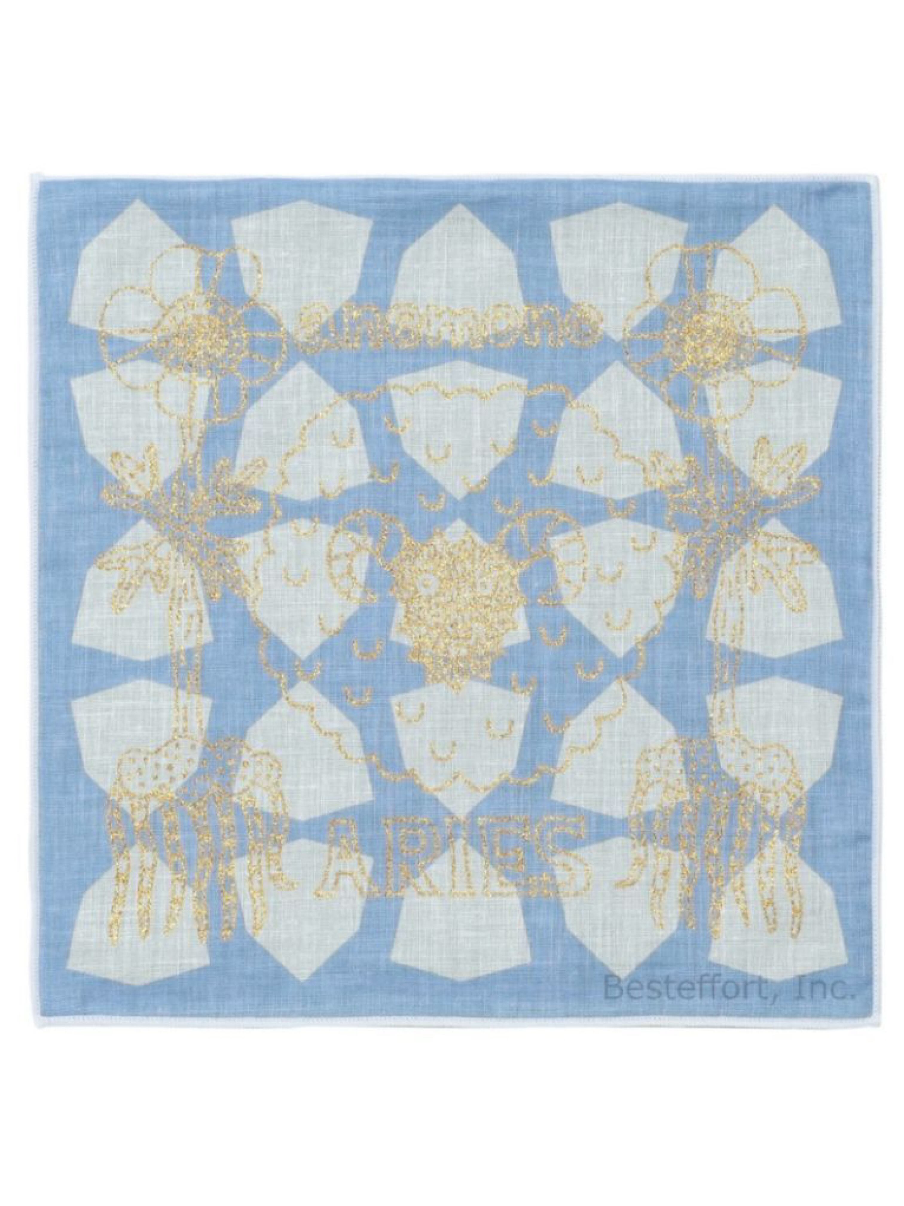 12の星座と季節の花々が、表面いっぱいにグリッター(ラメ)でプリントされたハンカチ。