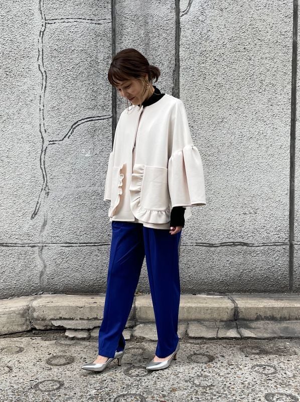 ポケットフリルとボリューム袖がポイントでトレンド要素も詰まった1着です。