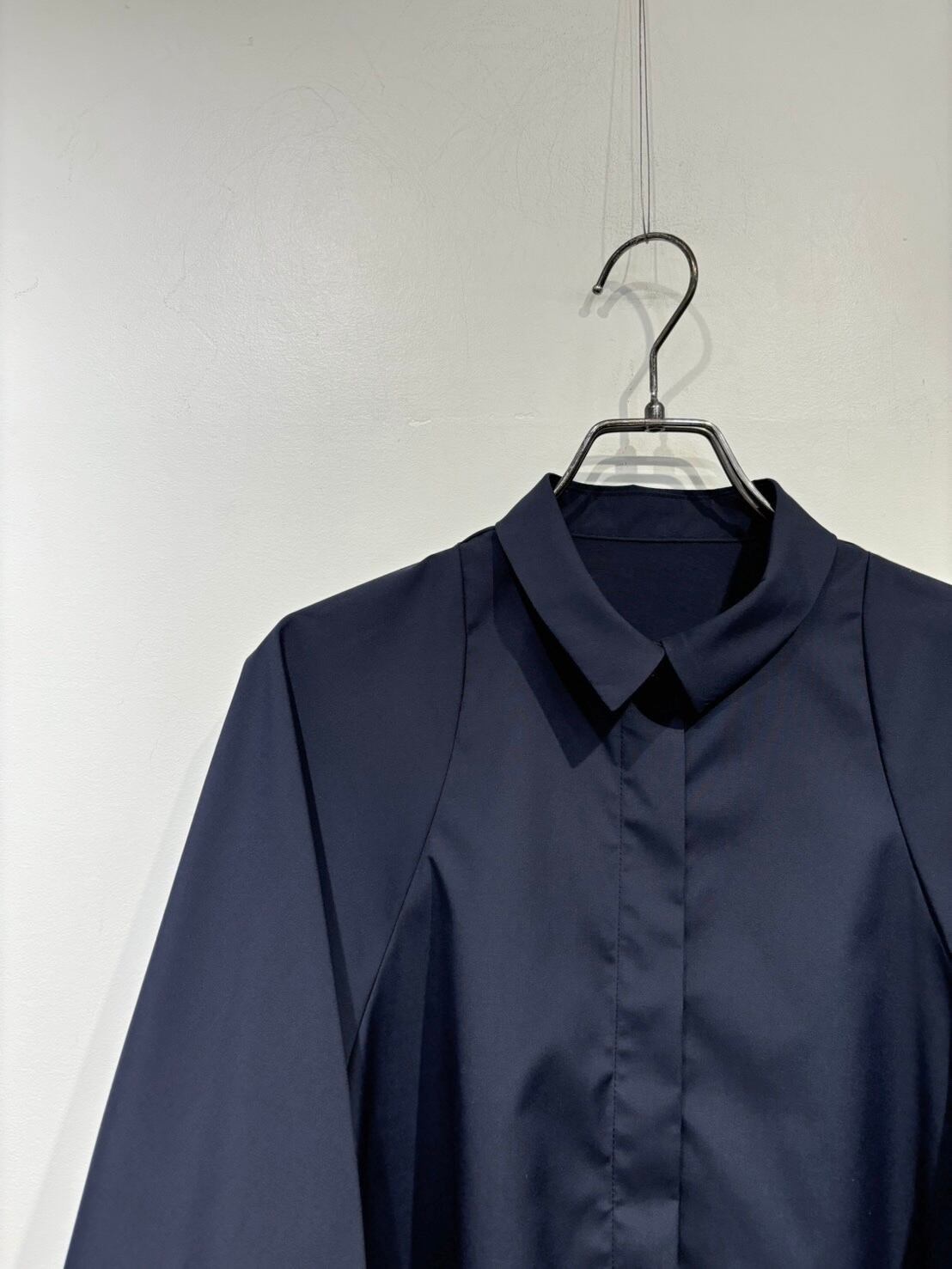 フロントはトップだけボタンを見せアクセントにし、残りは比翼仕立てでスッキリとした印象。