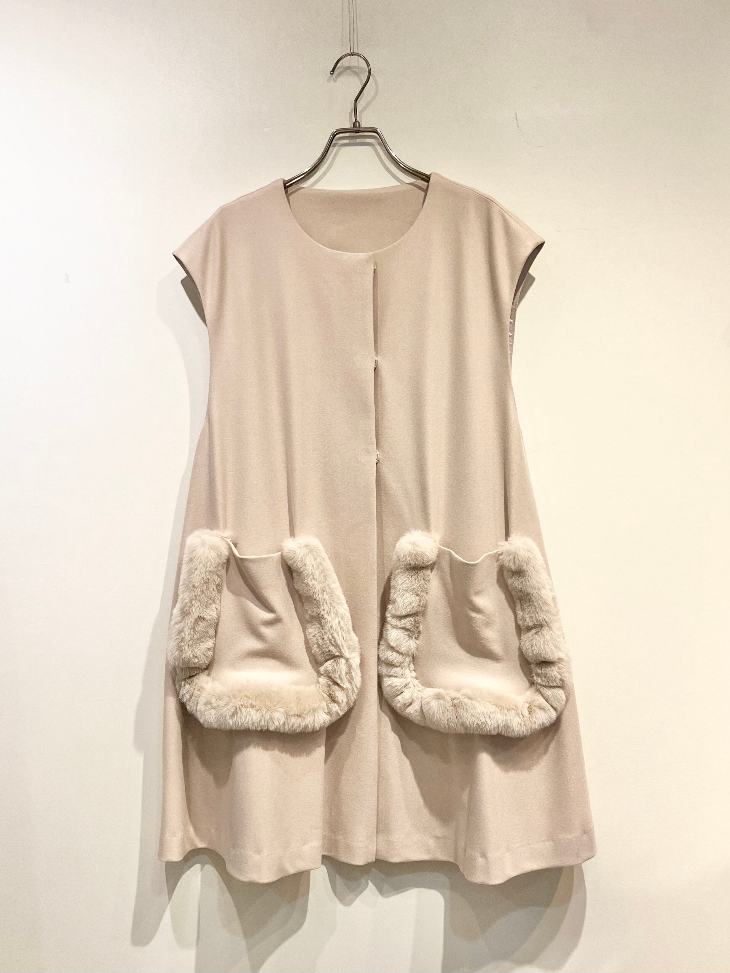 柔らかな質感と、緩やかなAラインシルエットが女性らしさを引き立てます。