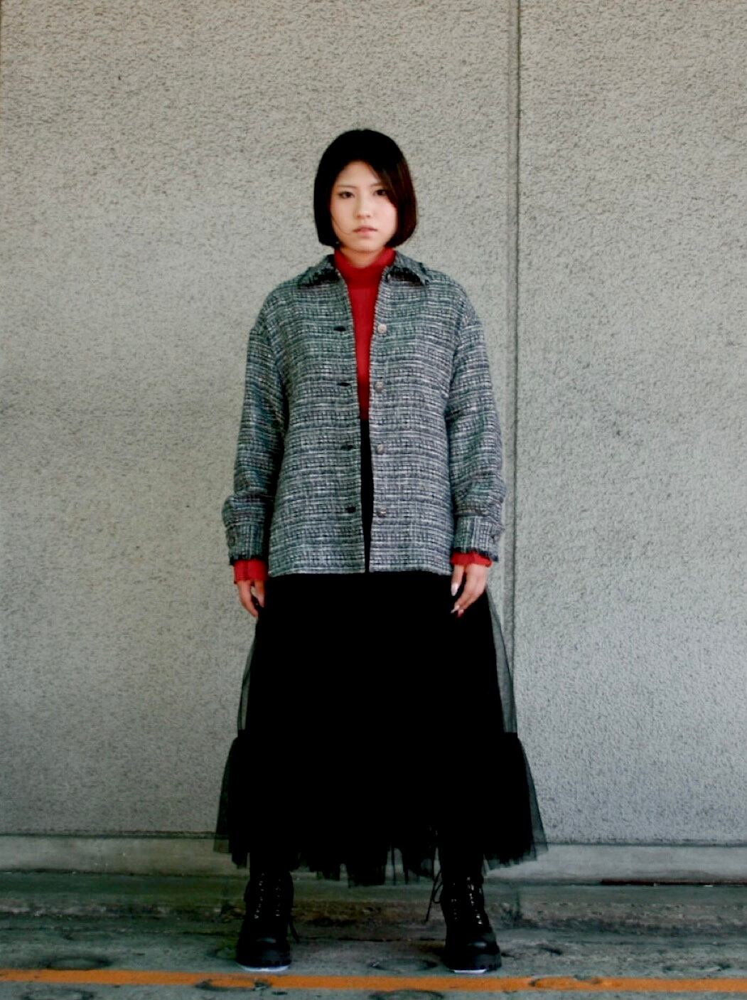 クラシックなツイードとカジュアル感のあるシルエットが好バランスのジャケット。