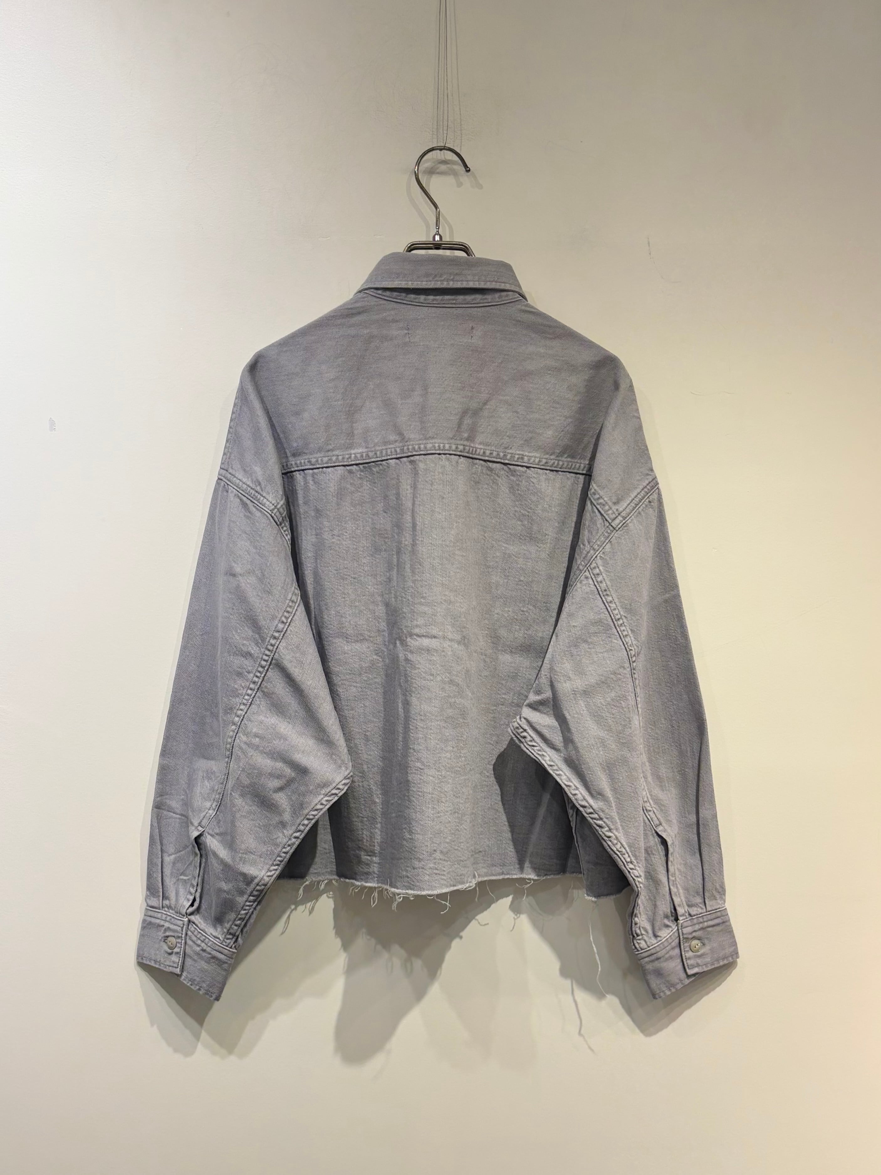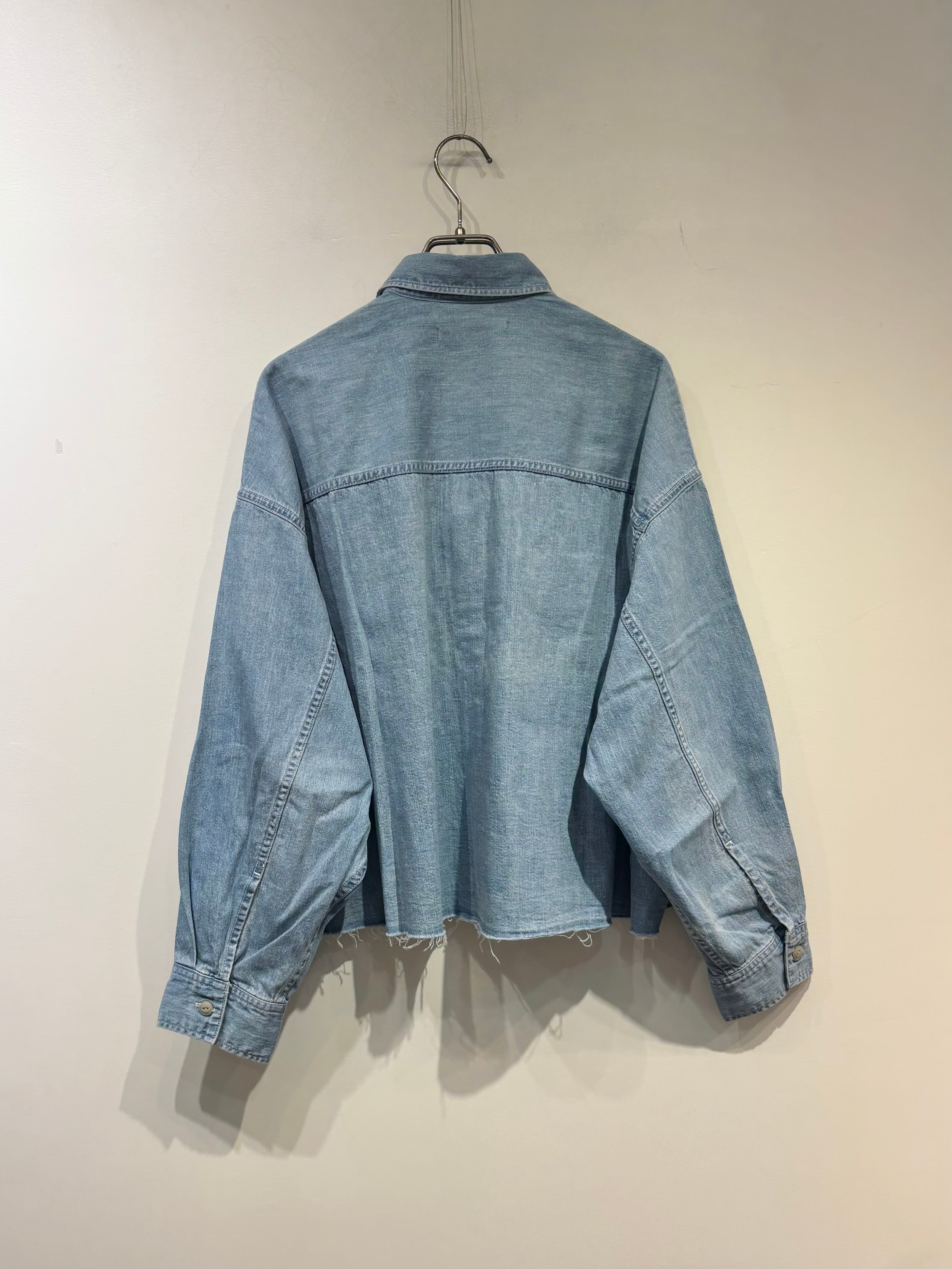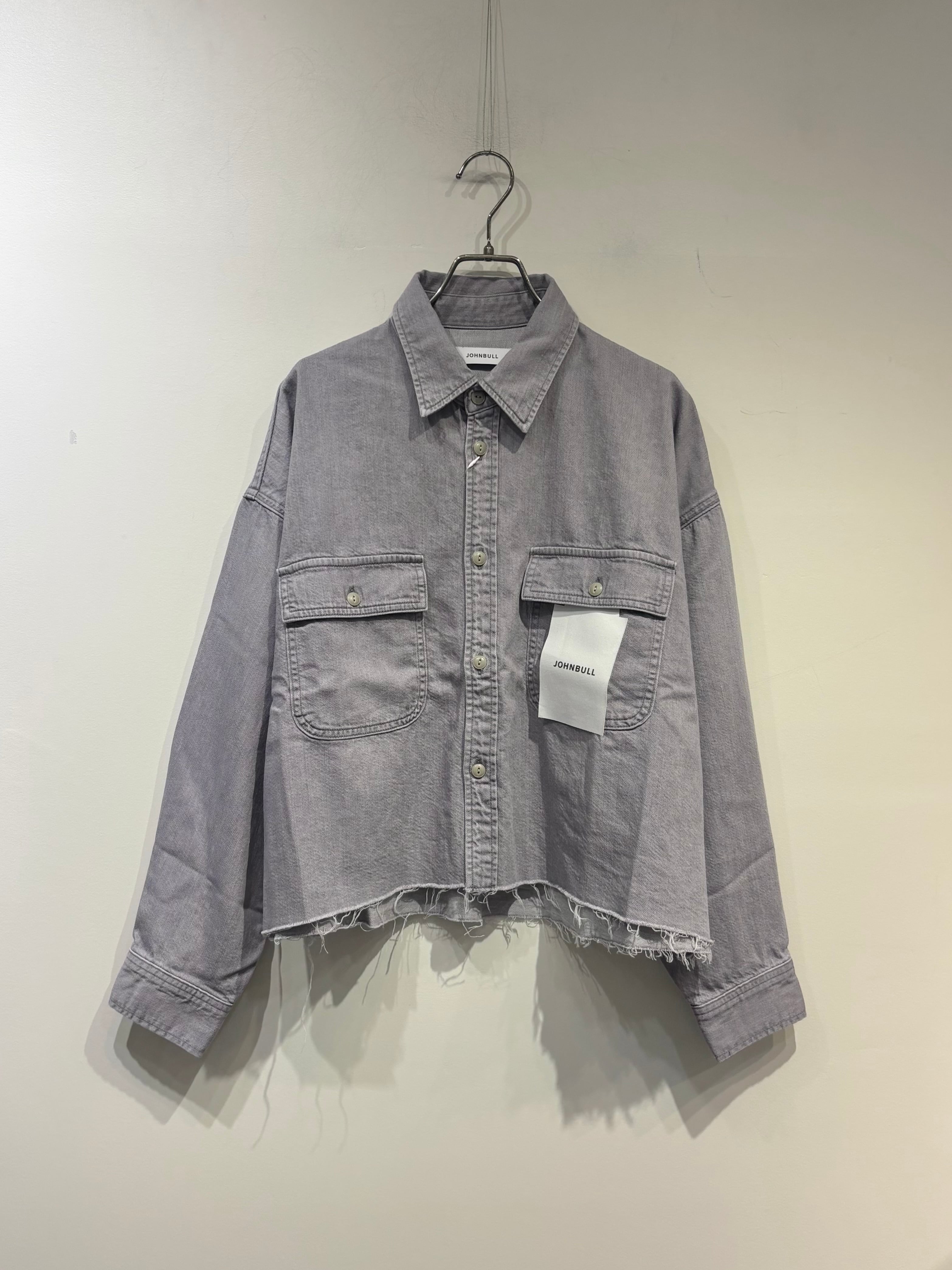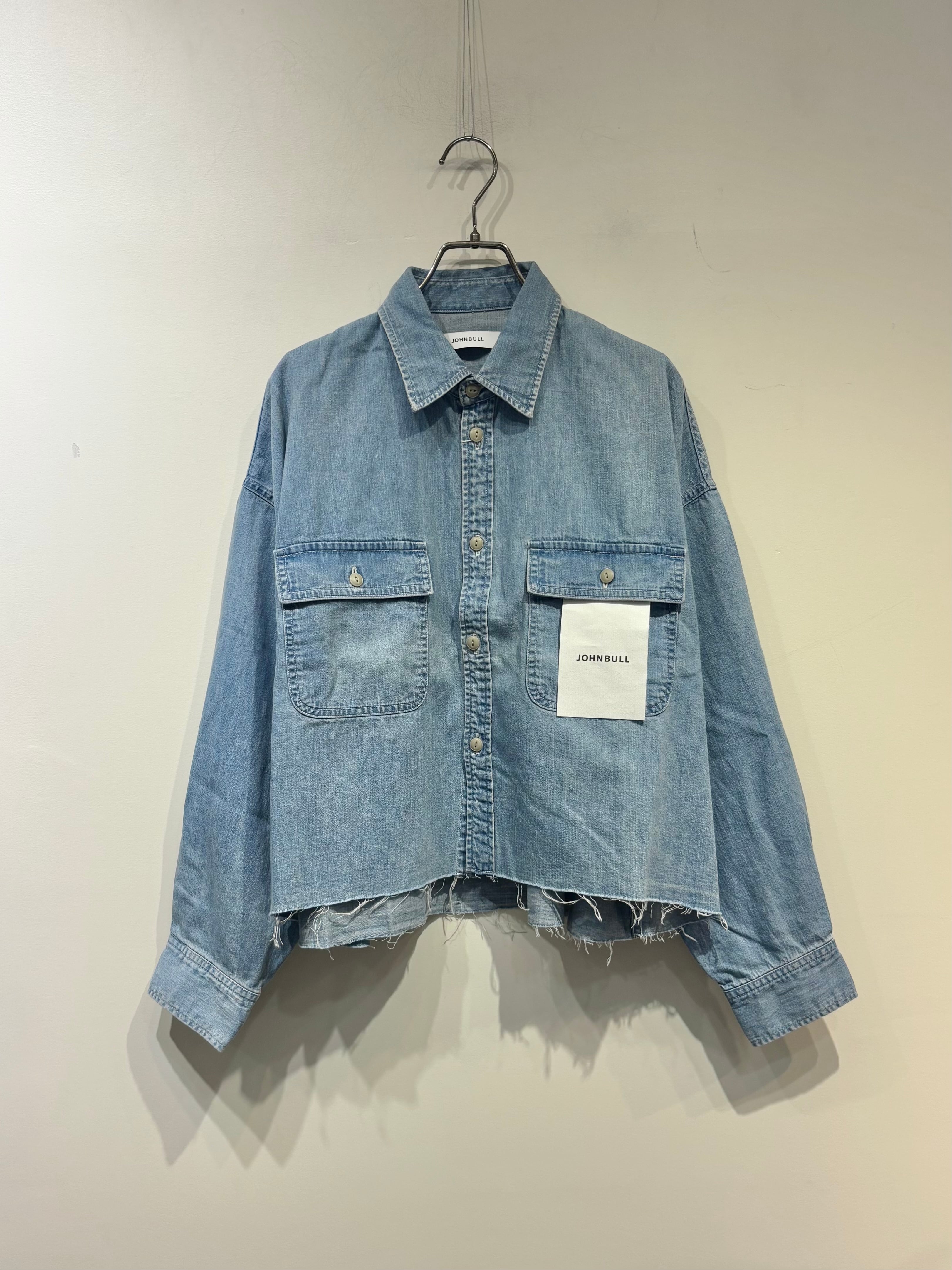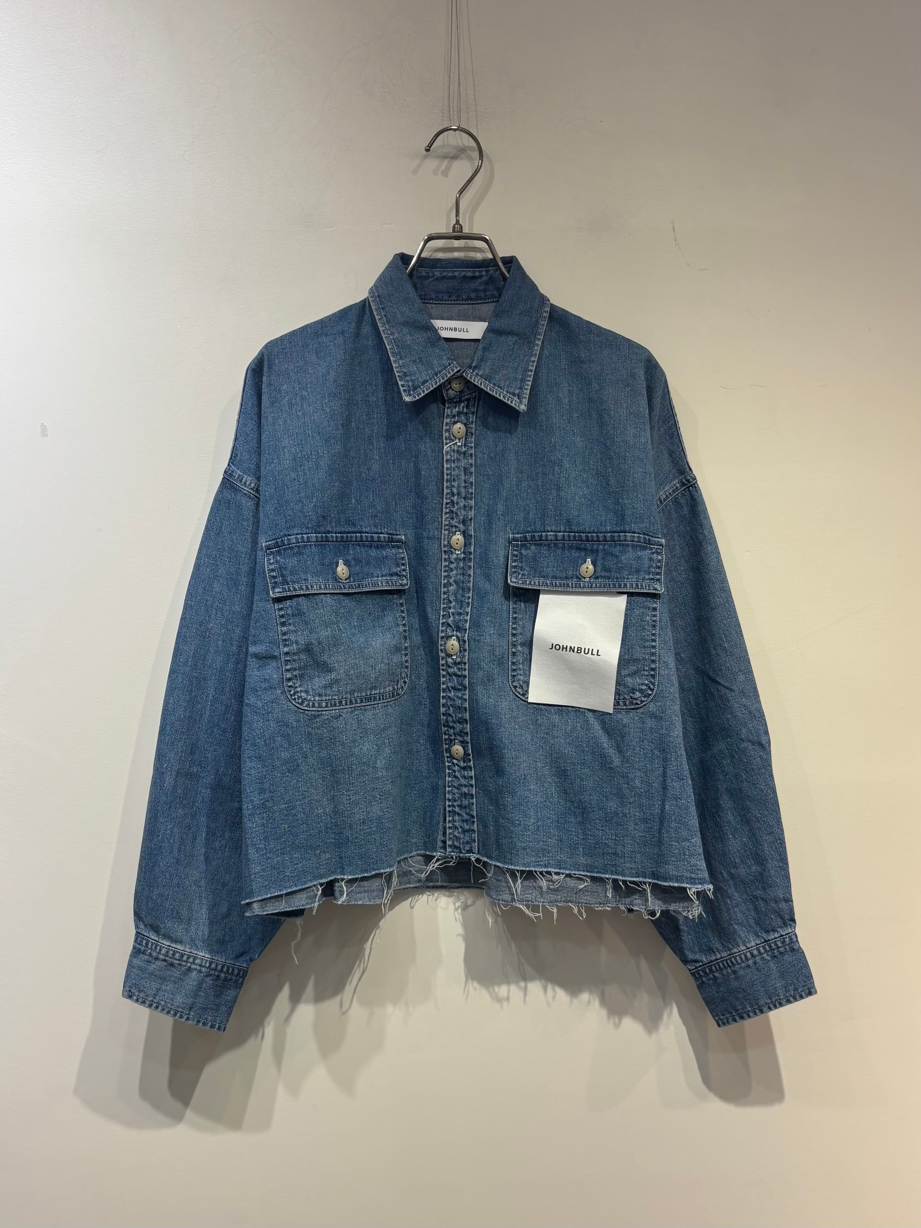 JOHNBULL定番のデニムシャツより、ボリュームのあるサイズ感、切りっぱなしの裾など新鮮なデザインにアレンジ。